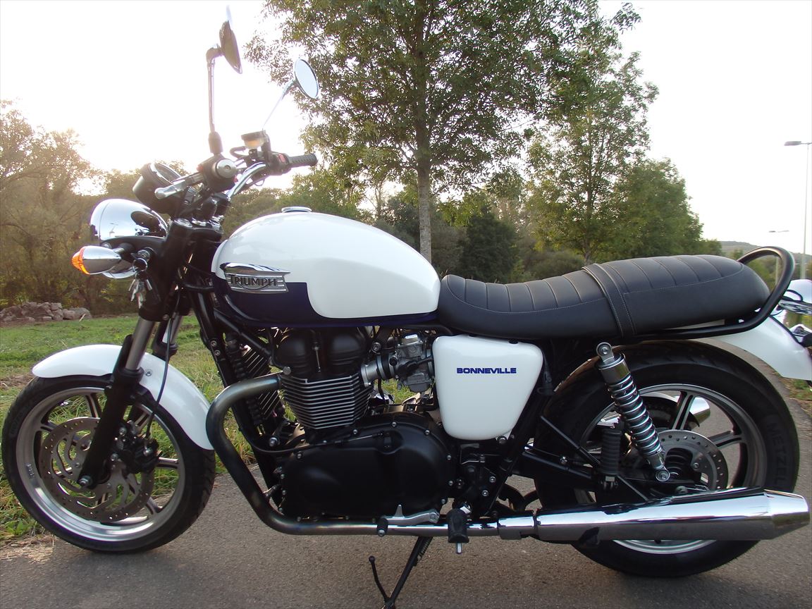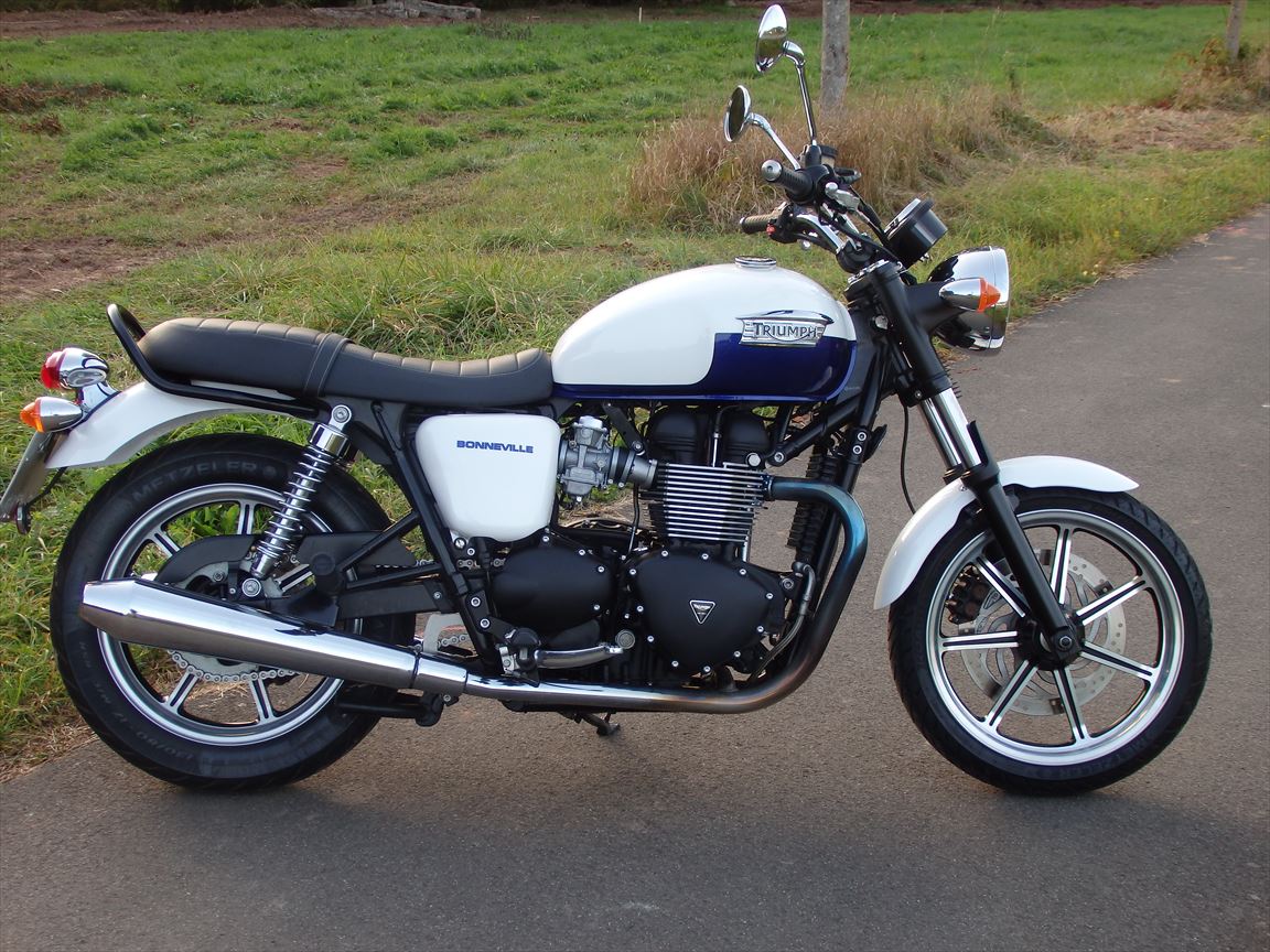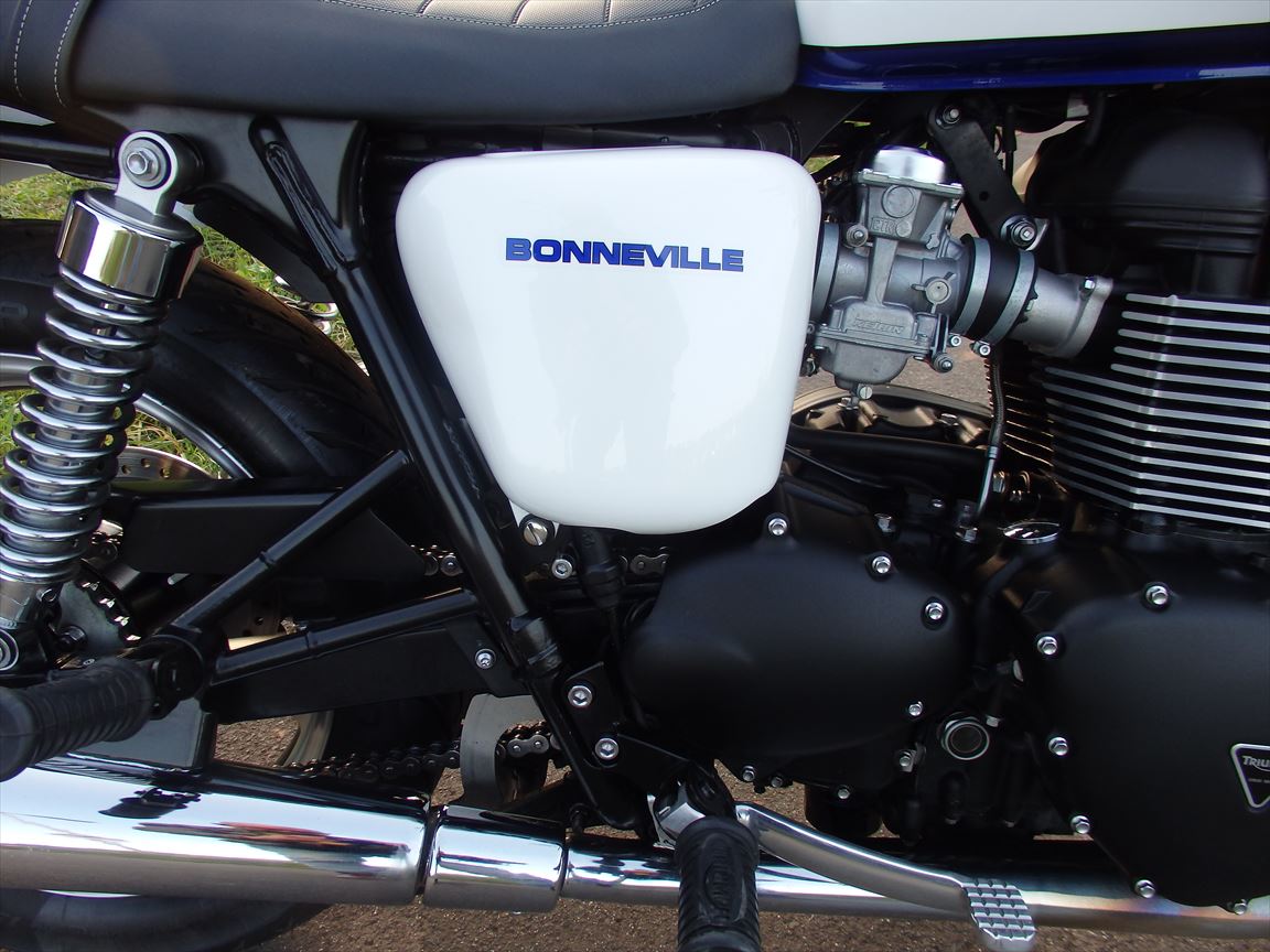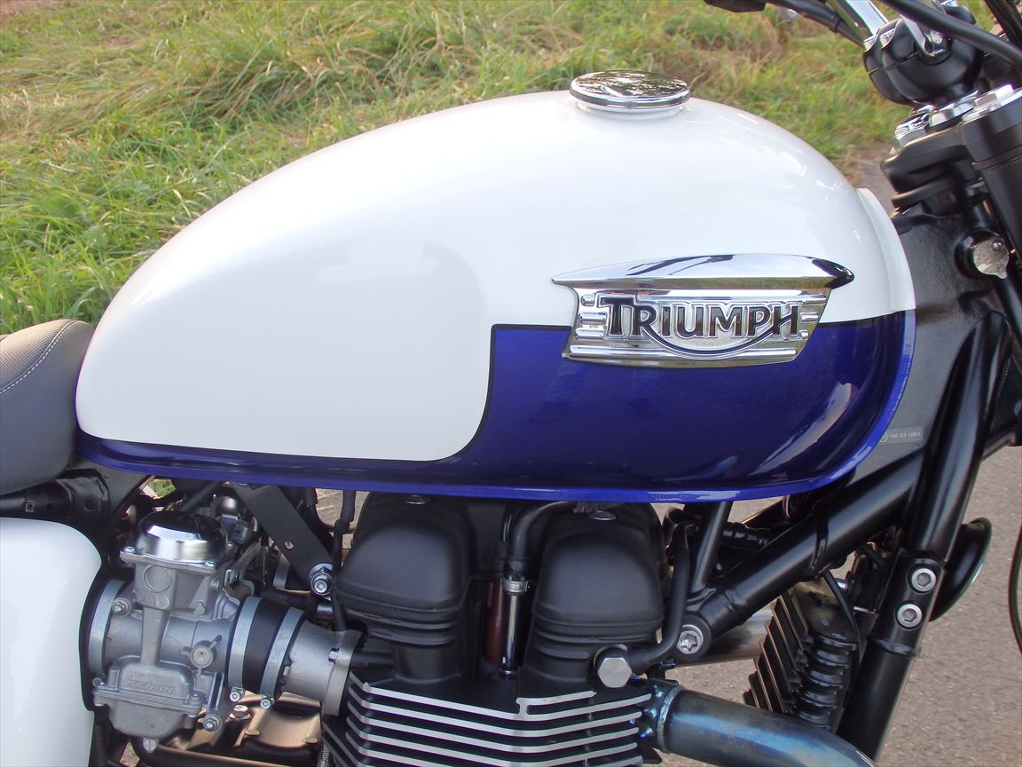 Triumph Bonnevillle, e.z. Feb/2016, 6,702km, 50kw, Scheckheftgepflegt, wie neu! Wunderschoene weisse und blaue Farben. 2 Schluessel, Serviceheft, Bedienungsanleitung. Inzahlungnahme moeglich
